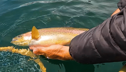 The hand twist is the other basic retrieve that should be mastered by all stillwater fly fishers. This is a busy retrieve, meaning that it requires more hand movement while at the same time helps to slow down the retrieve. The other advantage of this technique is that the angler has more control over the retrieve as the retrieve hand is always in contact with the fly line. The rod and retrieve hand start off in the same positions as the strip retrieve. The fly line is pulled down by the thumb and index finger of the retrieve hand while at the same time rotating the retrieve hand wrist outward thus leaving an open palm. The fly line is then hooked around the bay finger of the retrieve hand and then brought back to the thumb and index finger. This completes a full hand twist. As the maneuver is repeated coils of line will collect in the palm of the retrieve hand. It is best to release the fly line after 2 or 3 coils have accumulated. The hand twist is certainly the preferred retrieve to use when imitating the midge pupa either rising up through the water column or very slowly moving the pupal pattern horizontally through the water. In these instances a complete hand twist could take upwards of 8 seconds to complete.